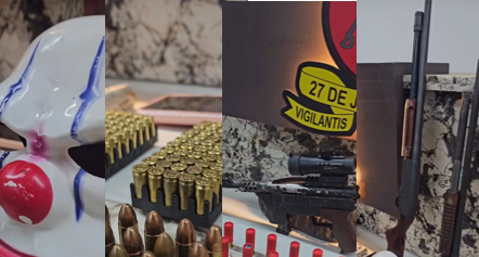 Entre os materiais apreendidos estavam três escopetas calibre 12, sendo uma com modo automático, além de uma arma de fogo caseira, estilo submetralhadora, calibre 9 mm. Também foram recolhidas 75 munições de calibre 9 mm, 27 munições de calibre 12, 51 munições de calibre .380, uma luneta de armamento e uma cartucheira.