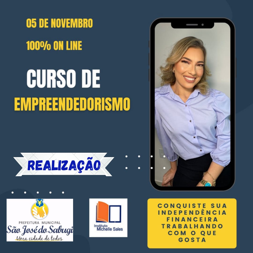 LocaisSão José do Sabugi PB Prefeitura de São José do Sabugi abre inscrições para CURSO DE EMPREENDEDORISMO gratuito. Por Wander Nóbrega - novembro 1, 2021 0 FacebookTwitterWhatsApp Prefeitura de São José do Sabugi abre inscrições para o CURSO ONLINE DE EMPREENDEDORISMO. As inscrições podem ser feitas online através do LINK: [CLIQUE AQUI E FAÇA SUA INCRIÇÃO]