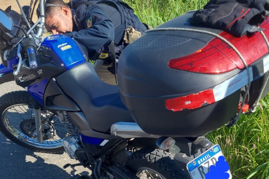 A primeira motocicleta recuperada foi uma Yamaha/Crosser Z ABS, cor azul, ano 2023. Após uma fiscalização minuciosa e consulta aos sistemas de segurança, os agentes constataram que o veículo havia sido roubado na cidade do Recife-PE e circulava com placa clonada. O condutor, um homem de 42 anos, informou que seu pai havia comprado a motocicleta por R$ 12.000,00, um valor bem abaixo do mercado.