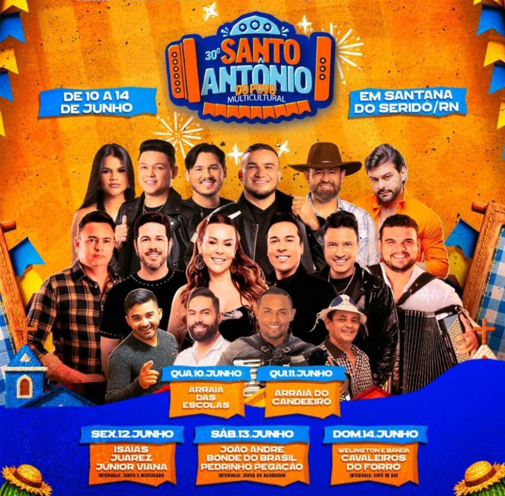 A programação oficial do Santo Antônio do Povo 2026 foi anunciada na madrugada desta semana, durante as comemorações pelos 63 anos de emancipação política de Santana do Seridó.